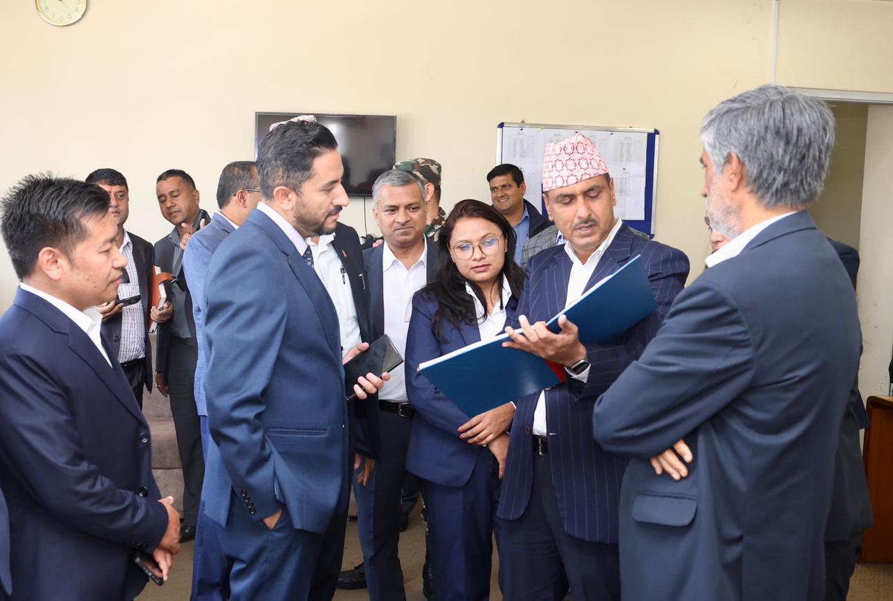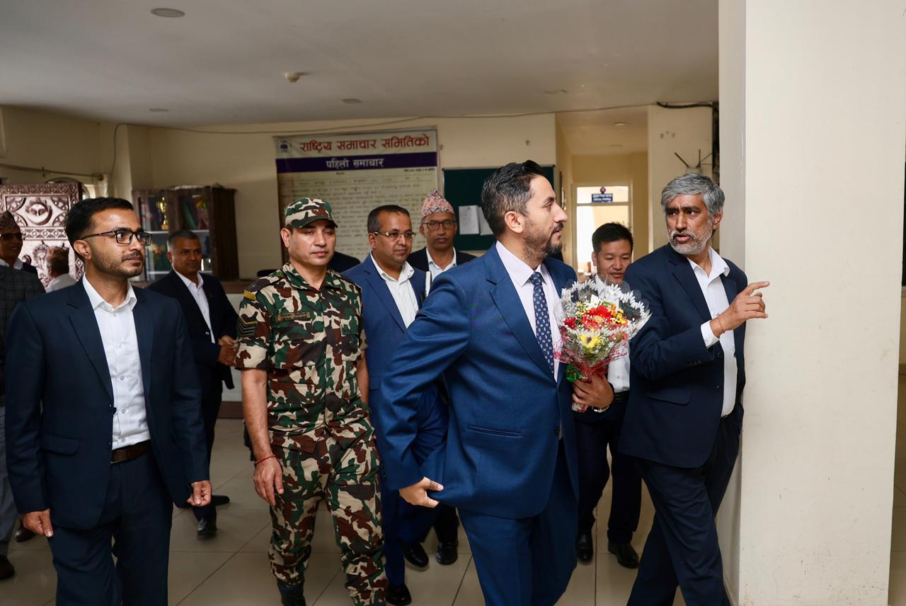 मा. सञ्चार तथा सूचना प्रविधि मन्त्री श्री जगदीश खरेलज्यूबाट राष्ट्रिय समाचार समितिको अवलोकन गर्दे।