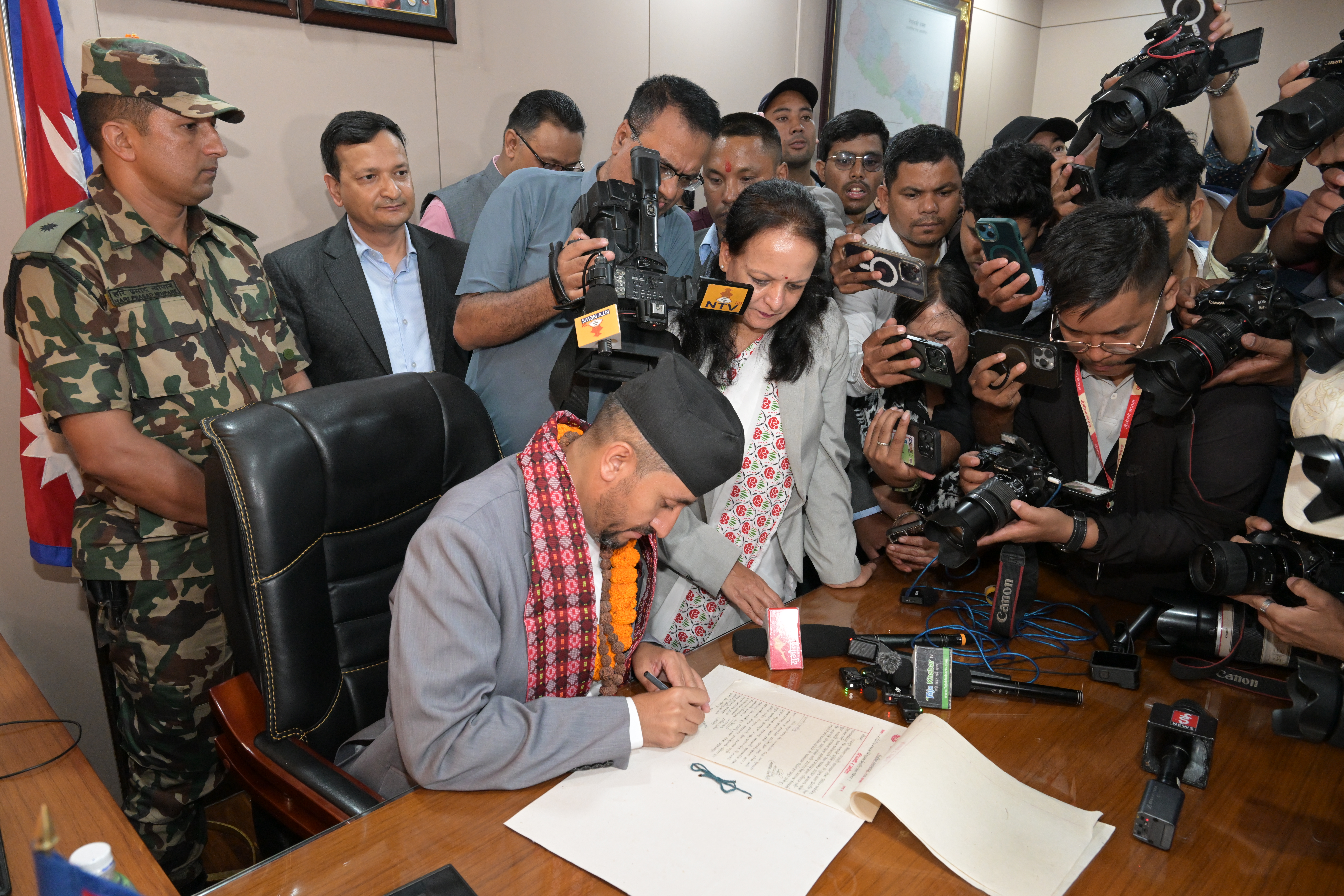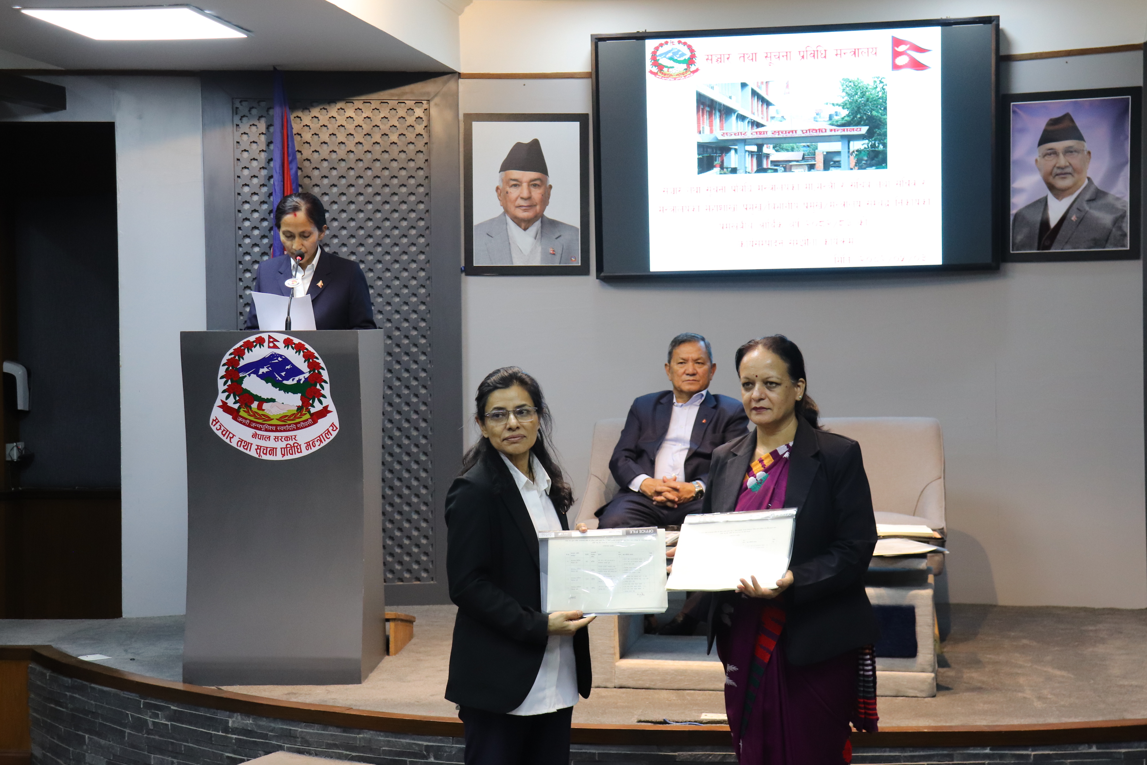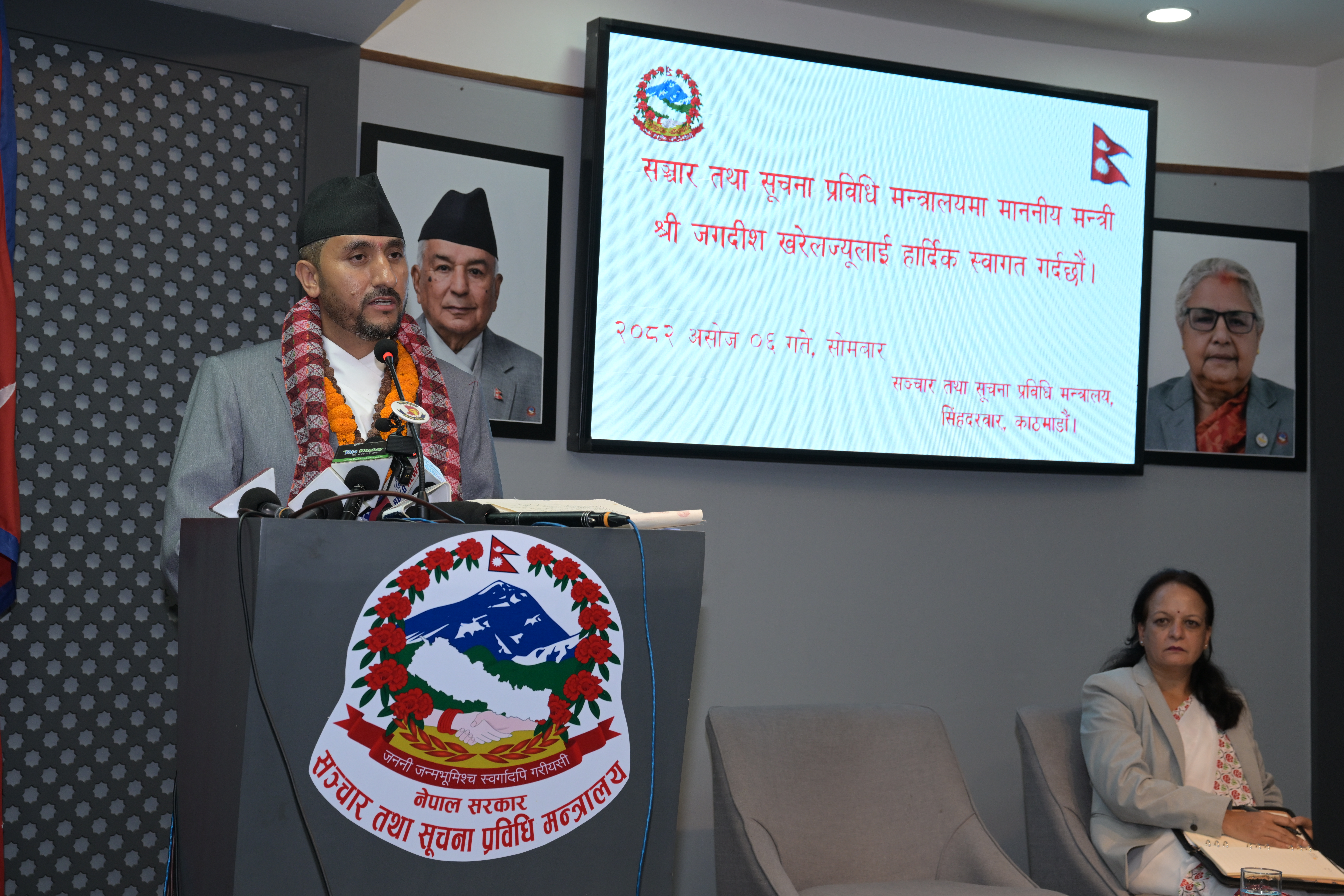 मा. सञ्चार तथा सूचना प्रविधि मन्त्री श्री जगदीश खरेलज्यूबाट मिति २०८२।०६।०६ गते पदभार ग्रहण गरिँदै।